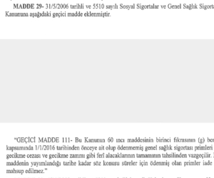 25 Aralık tarihli resmi gazetede yayımlanan 7571 sayılı Kanunla 5510/60-g maddesi kapsamında olan GSS primi borçlarının tahsilinden 01.01.2016 tarihinden öncesi kısmından vazgeçilmiştir.