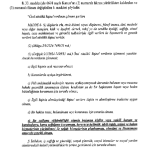 Kişisel verilerin korunması hakkındaki kanunun aşağıda yer vermiş olduğumuz bold ve altı çizili hükümlerinin,