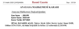 Bugünkü Resmi Gazetede yayınlanan Anayasa Mahkemesinin kararında,
