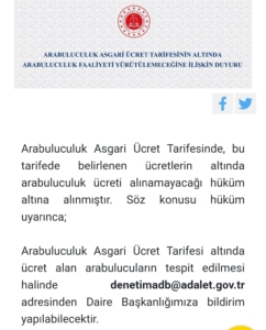 Adalet Bakanlığı yayınladığı 03.02.2026 tarihli Duyuru’sunda, arabulucuk tarifesi altında ücret alınamayacağı hususunu belirtti.