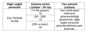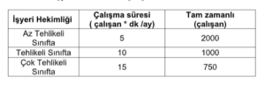 İşyeri hekimlerinin çalışma süreleri tablosu